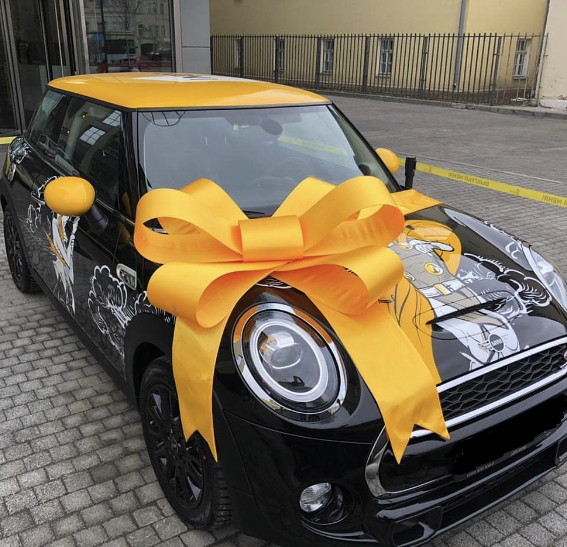 Представьте – торжественно украшенная машина, как подарок с бантом, роскошно венчающим крышу авто. Есть от чего ахнуть, и сам сюрприз, и столь изящный способ его оформления действительно вызывают wow-эффект. Купить подарочный бант на машину у нас можно быстро и по разумной цене. Для этого достаточно выбрать, какого цвета вы желаете приобрести подарочный бант на автомобиль, и вариант декора.